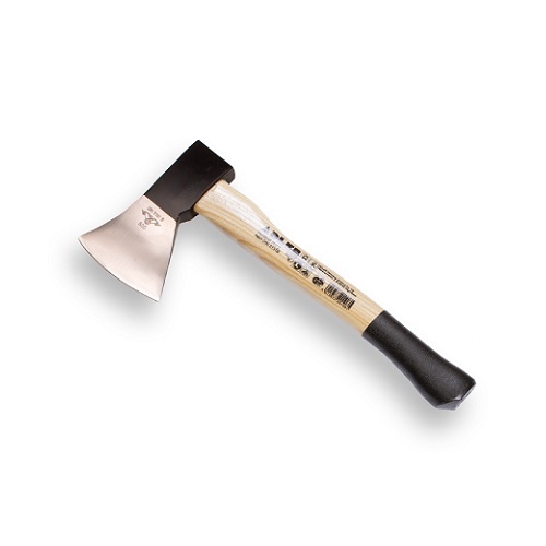 Handbijl of ook wel Keukenbijl genoemd, met keuze uit 36 & 38 cm. Deze handbijl is ideaal voor het kleinere handwerk. De bijl heeft een gehard stalen kop met een gepolijste scherpe snijrand. Hiermee hak je eenvoudig houten blokken of takken en wordt meegeleverd met een beschermhoes.