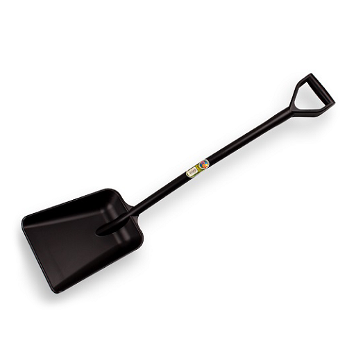 ATLAS ballastschop kunststof Zwart 27 x 34 cm met D-steel, uit 1 stuk. Totale lengte 112 cm. HACCP product, zeer krachtige polypropyleen met fiberglas versterkte schop, licht van gewicht en ideaal voor het opscheppen van grote lichte volumes. denk aan ladingen trimmen, verdelen of ladingresten bijeen te scheppen.