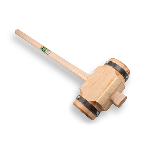 ATLAS Sleg ook wel tuinhamer of paalhamer genoemd heeft een ronde vorm en is gemaakt van verlijmt Essenhout. Extra sterk rond model voorzien van twee zware metalen ringen. Deze tuinhamer is aan beide kanten voorzien van een metalen band: dit voorkomt dat de hamer gaat zwellen en zorgt dus voor een langere levensduur. De kopmaat is 12x12x28cm. De sleg bevat een ovale Essen steel van 100 cm. Door de grote houten kop is deze sleg geschikt om houten palen of houten beschoeiing in de grond te slaan. Door de ovale steel staat de grote hamerkop altijd in de goede richting tijdens het slaan.