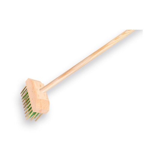 ATLAS onkruidborstel - vlonderborstel, afmeting 14x6 cm, met 3 rijen gehard staaldraad en 2 rijen PPN vervaardigd in een stevig houten verdikte kap. Voorzien van een dikkere steel, 150x2,8 cm. Geschikt voor het los borstelen van onkruid en natuurlijk het schoonborstelen van vlonders en ruwe betonklinkers.