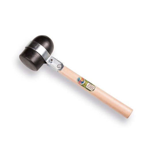 Rubberhamer Atlas Rotterdams model keuze uit (met of zonder gat), Zacht rubber 70 shore. Compleet met Hickory hardhouten Atlas steel en gemonteerde extra dikke verzinkte beugel. Kopmaat van de hamer ø 90x142 mm., één kant vlak en één kant bol. Ook bekend als Tegelhamer. De sterke HICKORY steel loopt door de rubber kop heen en geeft extra sterkte. Deze rubberen hamer is bij uitstek geschikt, voor het aankloppen dikke tegels en straatstenen. De handen van een gemiddelde stratenmaker zijn groot, vandaar dat de gemonteerde Atlas steel een stuk dikker is, zodat de rubberhamer perfect in de (grote) hand past en dat de gebruiker minder hoeft te knijpen om de hamer vast te houden. De hardhouten Hickory steel is de sterkste steel in zijn soort en zorgt voor gebruiksgemak. De Atlas rubberen hamers zijn in meerdere maten en modellen leverbaar. Zowel met zacht als met hard rubber. Deze producten worden veel gebruikt door professionele Stratenmakers en Hoveniers.
