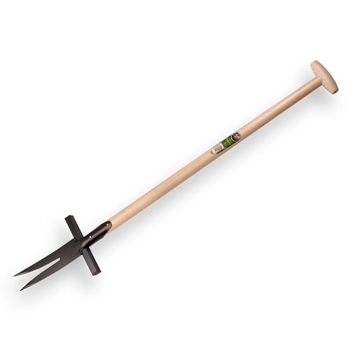 Zuringsteker / Distelsteker ATLAS met Essen Atlas schopsteel recht 95 cm. De zuringsteker is gesmeed en met rol speciaal ontwikkeld voor het uitsteken van zuringplanten of andere pen gewortelde onkruiden. De lange gesmede tanden i.c.m. de rol aan de onderzijde van de Atlas steel maakt het mogelijk de zuringplant compleet met wortel eenvoudig uit het gras te verwijderen, zonder onnodige beschadigingen aan uw grasland of grasmat.