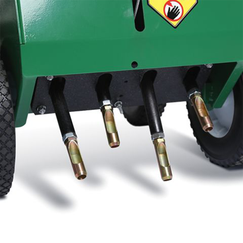 De PL-beluchter is een compacte machine, wat hem ideaal maakt voor zowel kleine als grote gazons. Dankzij de krukas-beluchting is er altijd slechts één beluchtingspen in de grond, wat het manoeuvreren en keren vergemakkelijkt. De PL wordt geleverd met vier beluchtingspennen die worden aangedreven door zware excentrieken. De machine is zeer gebruiksvriendelijk; het aantal gaten per vierkante meter wordt bepaald door de loopsnelheid.