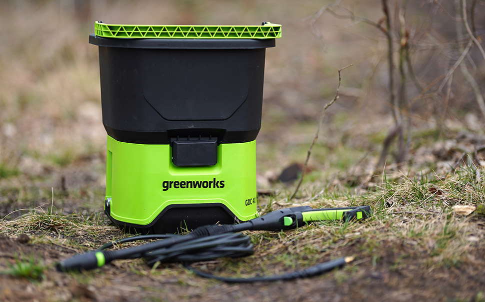 De accu hogedrukreinigers (GDC40 of GDC 60) van Greenworks zijn voorzien van een 40 of 60 Volt Lithium Ion accu die garant staan voor een zeer lange werktijd. Op basis van de ledlampjes in de accu’s is in één oogopslag het beschikbare batterijniveau te zien.