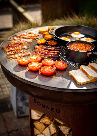 Koken wordt extra veelzijdig met de BonFeu BonBiza Open BBQ - Roest dankzij de grote plancha van 80 cm diameter en 6 mm dikte, met een centraal grillgedeelte van 48 cm. De warmte verspreidt zich geleidelijk van het midden naar de rand, waardoor verschillende gerechten tegelijk bereid kunnen worden met optimale controle.