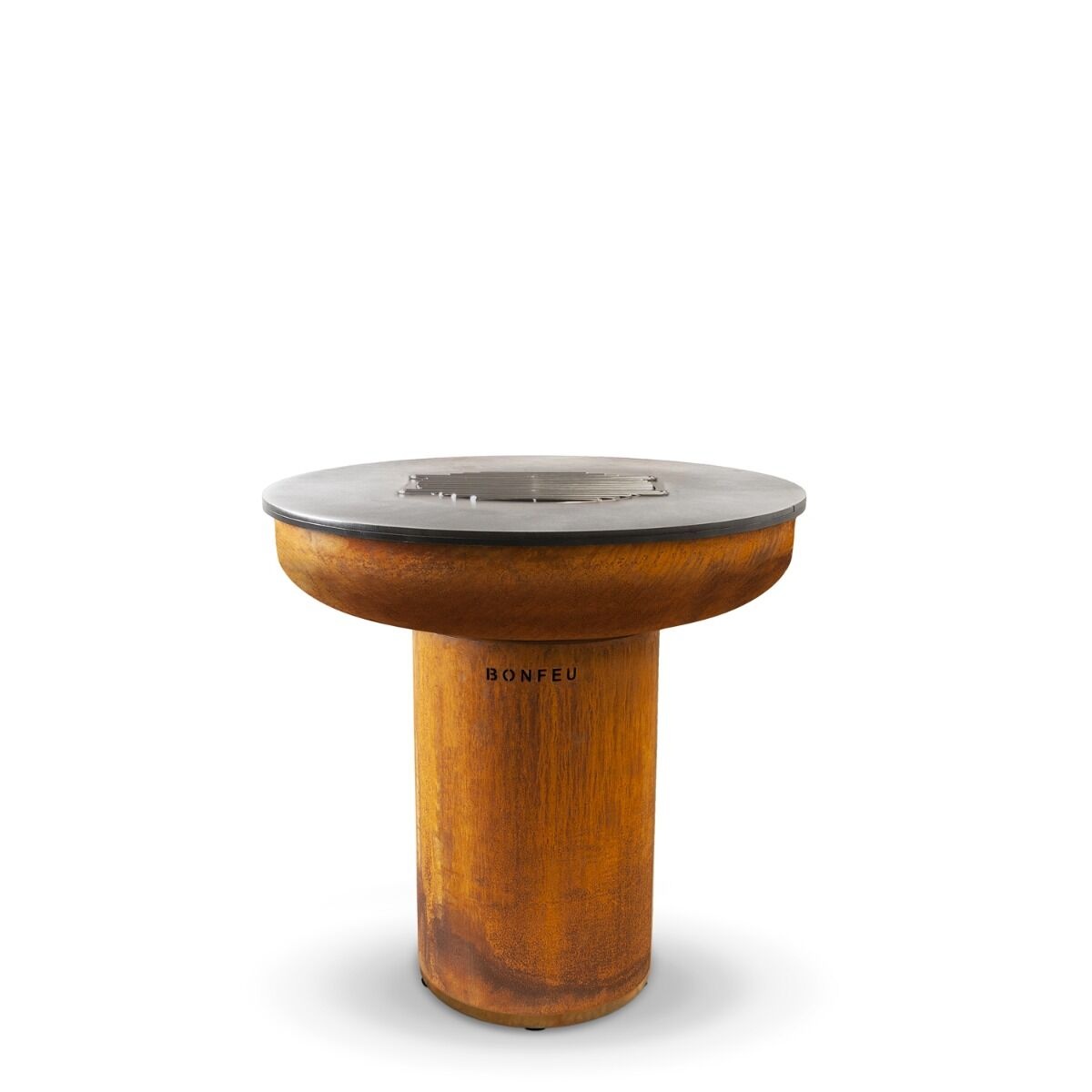 Dankzij het gebruik van cortenstaal krijgt de BonFeu BonBiza XL een kenmerkende roestbruine uitstraling die niet alleen stijlvol is, maar ook bescherming biedt tegen weersinvloeden. De natuurlijke oxidehuid voorkomt verdere corrosie en zorgt voor een lange levensduur, terwijl het materiaal bijdraagt aan een robuuste en warme uitstraling.