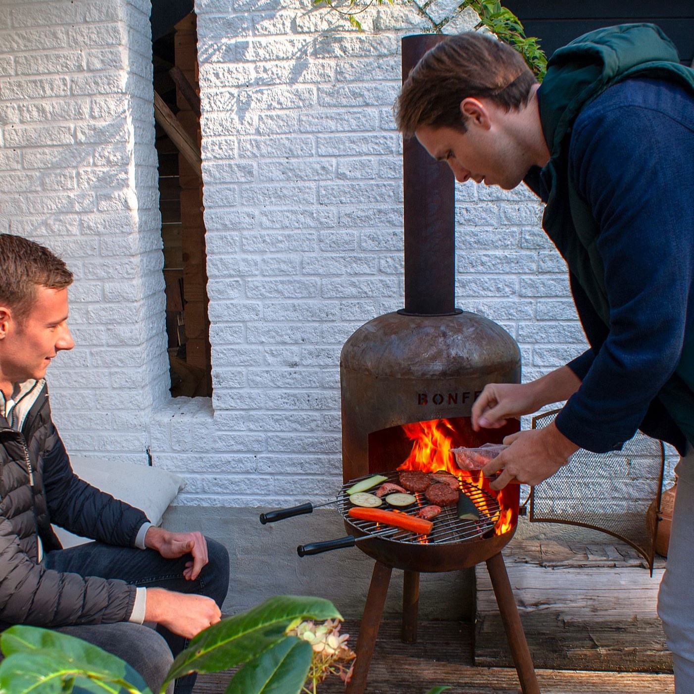 Tijdens het barbecueën biedt de BonFeu Bonbono Tuinhaard - Roest extra gemak dankzij het draaibare grillrooster met handvat en twee standen. Hierdoor is de temperatuur beter te regelen en wordt koken boven open vuur eenvoudig en praktisch.
