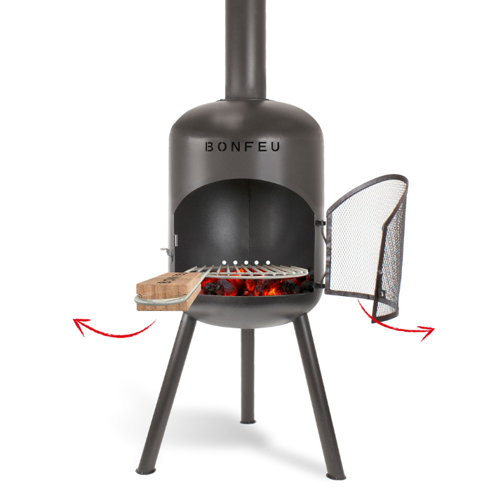 Wat de BonFeu BonBono extra onderscheidend maakt, is het geïntegreerde grillsysteem waarmee direct boven het vuur kan worden gekookt. De draaibare constructie maakt het mogelijk om gerechten gecontroleerd te bereiden zonder continu boven de hitte te staan, wat het grillen eenvoudiger en veiliger maakt.
