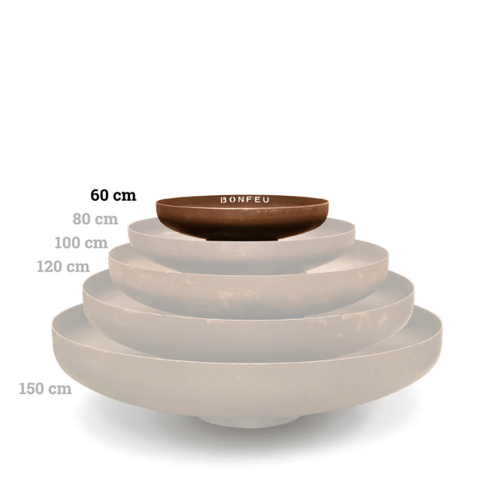 De BonFeu BonBowl vuurschalen zijn gemaakt van hoogwaardig cortenstaal en zorgen voor langdurige warmte en een sfeervolle uitstraling op het terras. Met vijf verschillende diameters is er altijd een passend formaat beschikbaar. Het tijdloze ontwerp past zowel in moderne als klassieke tuinen, terwijl het decoratieve logo en de opstaande rand ervoor zorgen dat hout en as netjes binnen de schaal blijven. Afvoergaten in de bodem voeren regenwater eenvoudig af.