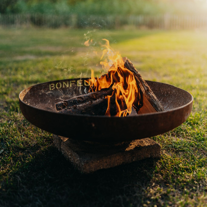 De BonFeu BonBowl is vervaardigd uit 3 mm dik cortenstaal, een sterke en weerbestendige staalsoort. De natuurlijke roestbruine oxidehuid beschermt het onderliggende materiaal tegen verdere oxidatie en maakt de vuurschaal onderhoudsarm en geschikt voor langdurig buitengebruik.
