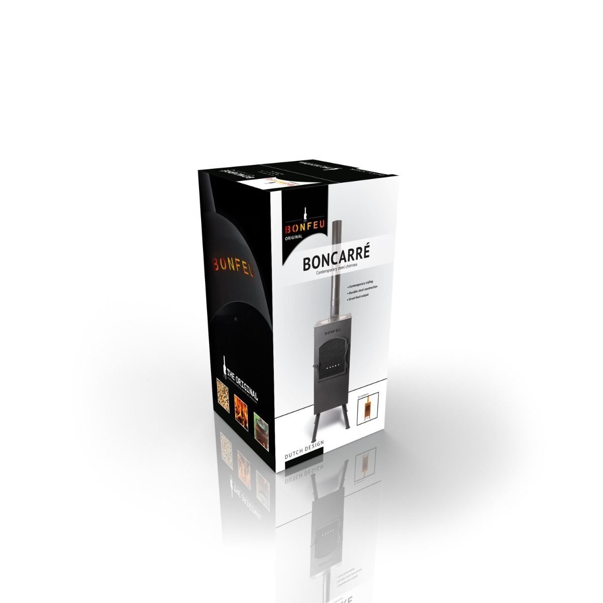 De BonFeu BonCarré is een middelgrote tuinhaard die door zijn vierkante vorm en stevige poten direct opvalt in elke tuin of op elk terras. Dankzij de hittebestendige coating blijft het oppervlak beter beschermd tijdens intensief gebruik, terwijl het afneembare vonkenscherm zorgt dat hout en vonken veilig binnen de haard blijven. De BonFeu BonCarré combineert sfeervol stoken met de mogelijkheid om buiten te koken, waardoor hij zowel praktisch als decoratief inzetbaar is.