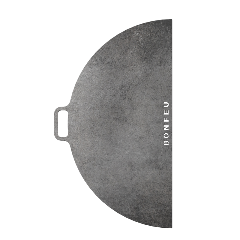 De BonFeu BonPlancha halve cirkel Ø120 cm BonBowl is voorzien van handgrepen, waardoor plaatsing en gebruik eenvoudig blijven. Doordat slechts de helft van de vuurschaal wordt bedekt, blijft ruimte over voor andere accessoires zoals een grillrooster, wat extra flexibiliteit geeft tijdens het buiten koken.