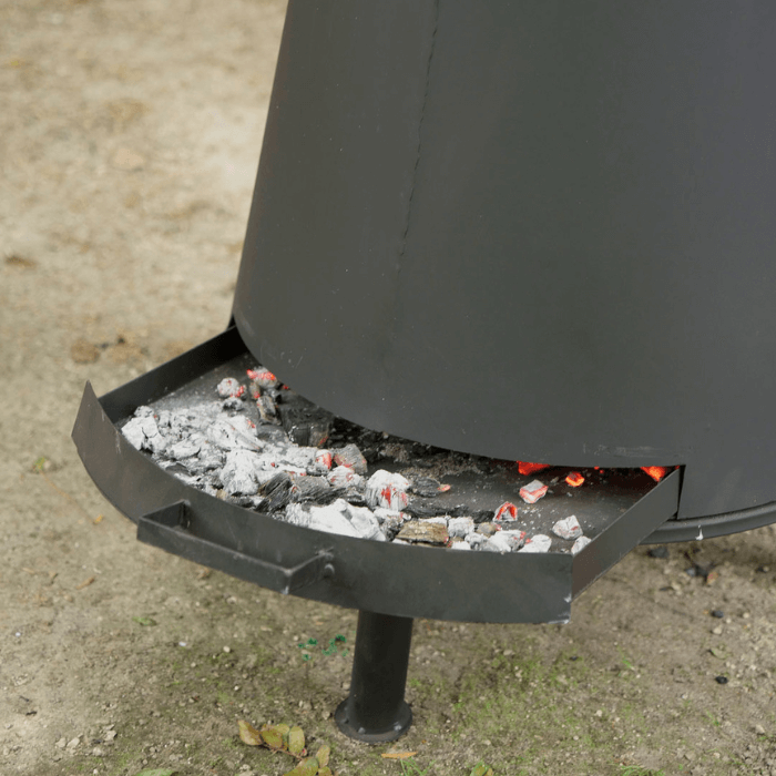 De BonFeu BonPyra is een grotere tuinhaard die direct opvalt door zijn piramidevorm en robuuste uitstraling, ideaal als sfeermaker op terras of in de tuin. Drie stevige poten zorgen voor een stabiele plaatsing, terwijl het afneembare vonkenscherm voorkomt dat hout en vonken uit de haard ontsnappen. De BonFeu BonPyra is daarnaast uitgerust met een aslade aan de achterzijde, waardoor as eenvoudig en netjes kan worden verwijderd.