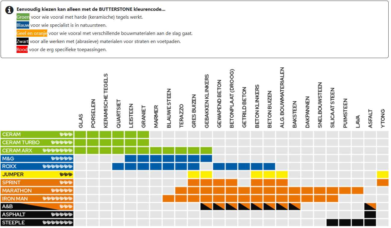 Butterstone Diamantzaagblad CERAM TURBO is al jarenlang de favoriet van vakmannen. Naarmate materialen steeds harder worden en klanten hogere eisen stellen, blijft de CERAM TURBO de betrouwbare keuze voor het zagen van keramische tegels. Of je nu werkt met een haakse slijper of een tafelzaagmachine, deze diamantschijf levert keer op keer een strak en professioneel resultaat. Het is dan ook geen verrassing dat professionele vloerders massaal voor deze klassieker kiezen.