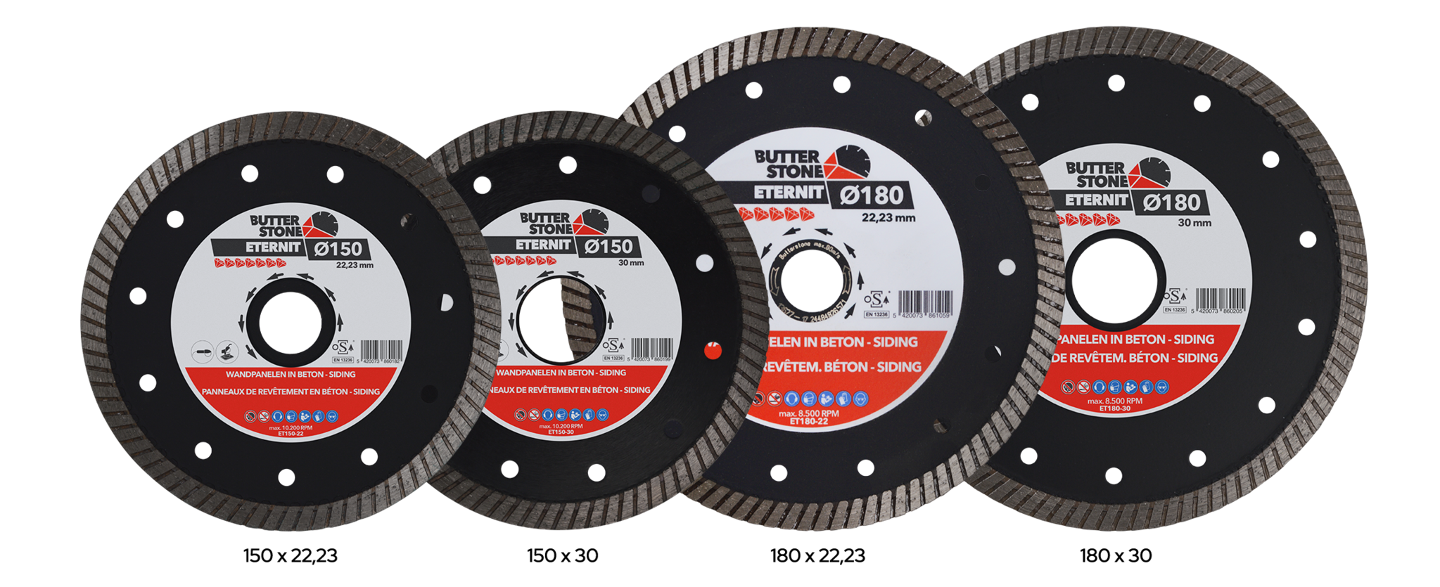 De Butterstone Eternit is een veelgebruikte diamantschijf voor het op maat zagen van betonnen wandpanelen (zoals sidings). Deze schijf levert nette resultaten en behoudt zijn scherpte goed, zelfs bij regelmatig gebruik op een afkortzaag. De OSA-certificering staat bovendien garant voor veilig gebruik.