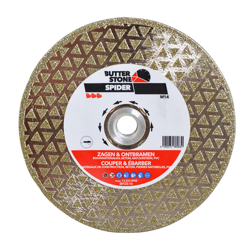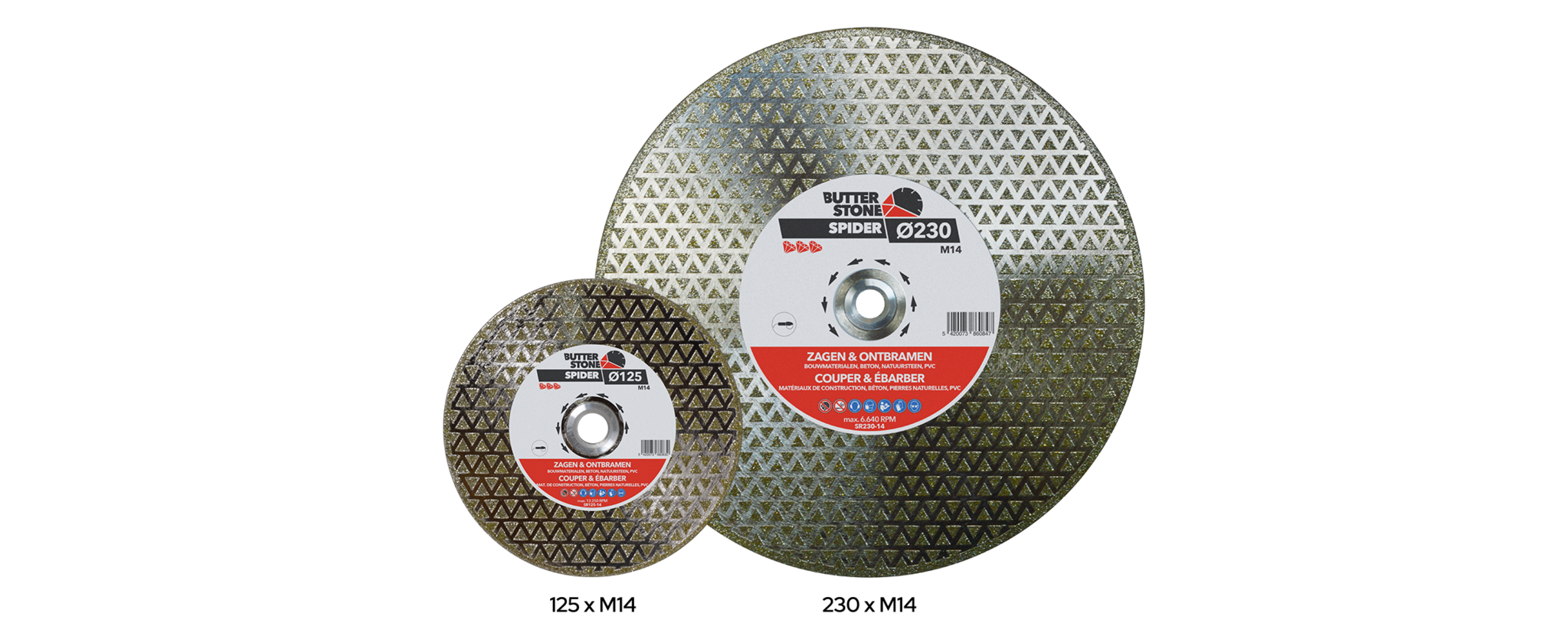 Wanneer je na het zagen een gladde zaagsnede wilt, is de Butterstone Spider een goede keuze. Deze diamantschijf zaagt en schuurt tegelijk, wat zorgt voor een nette afwerking. De Spider past op een haakse slijper en is geschikt voor materialen zoals pvc, natuursteen en beton.