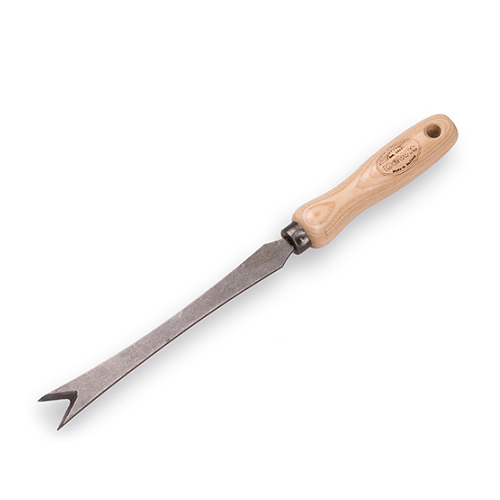De WIT Bio paardenbloemsteker met ophangoog en essen handvat 14 cm. Met deze paardenbloemsteker haal je gemakkelijk paardenbloemen incl. lange penwortels uit je gazon.