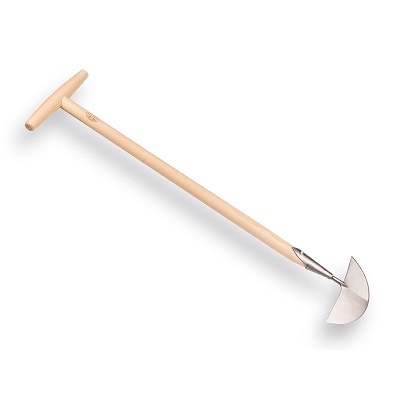 Praktische graskantsteker van het merk De WIT. Voorzien van een een essenhouten steel en een brede kruk. Een makkelijk stuk tuingereedschap waarmee je de rand van het grasveld kunt afsteken. Het blad van dit gereedschap heeft de vorm van een halve maan. Het ronde snijvlak is maar aan één kant geslepen. Professionele uitvoering.