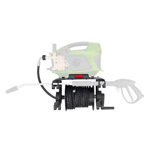 Het grote voordeel van dit muurframe is niet alleen dat je nooit meer hoeft te zoeken naar je hogedrukspuit, ook krijg je er namelijk gratis een haspel met hogedrukslang bij. Deze speciale haspel is voorzien van maar liefst 15 meter hogedrukslang. En dat allemaal op een handig bevestigingsframe voor aan de muur.
