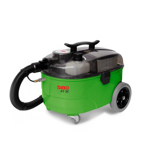 Zoek je een machine om je tapijt te reinigen? dan zit je bij de DiBO P7 SE aan het juiste adres! Voor het reinigen van tapijt en vloerbedekking heeft DiBO een speciale tapijtreiniger ontwikkeld. De P7 SE is een uiterst krachtige reiniger voor de professionele markt. Ook al heeft hij een bescheiden afmeting. Deze machine is gebouwd volgens een ingenieus technisch systeem. De shampoo-oplossing wordt middels een krachtige pomp onder vier bar geïnjecteerd in het tapijt waarna het opnieuw wordt opgezogen door een 230 mbar vacuüm.