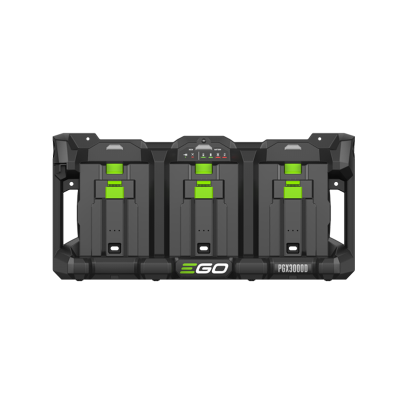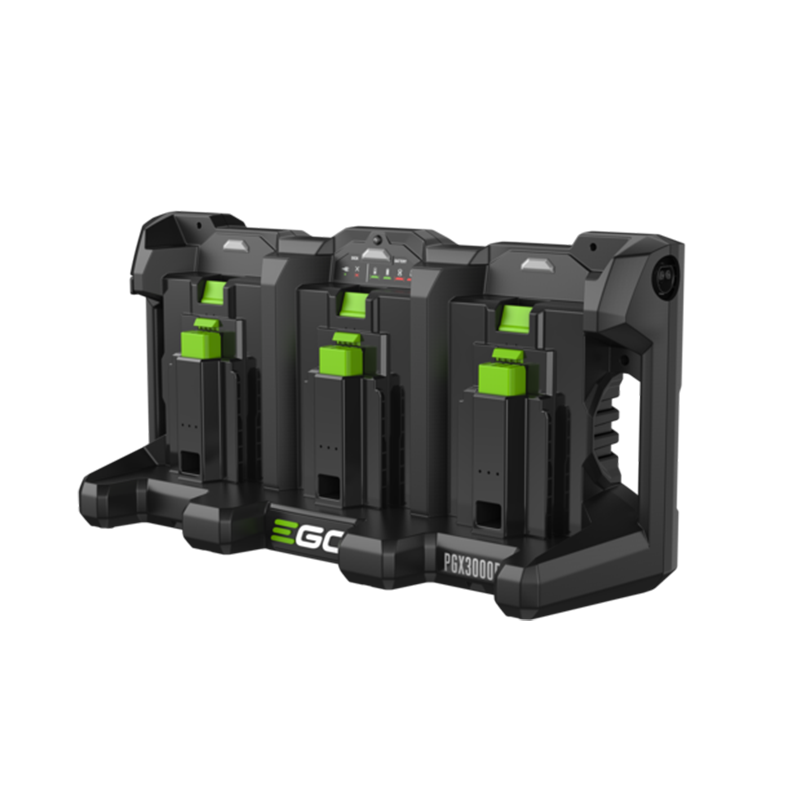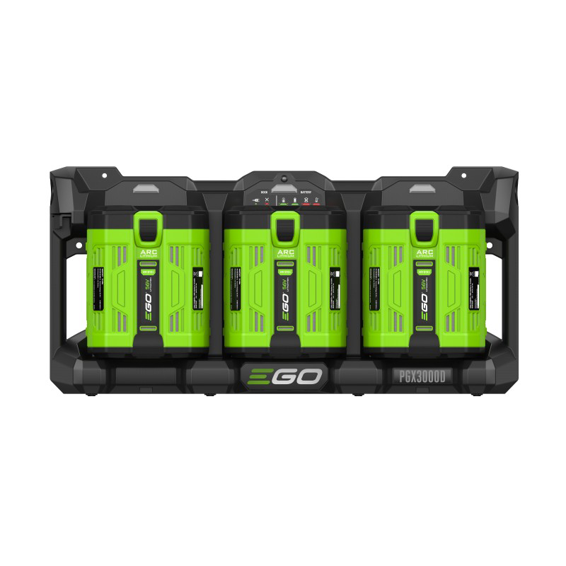 Het EGO Pro X dock is ontworpen voor aansluiting op de EGO Pro X 1600W Power Hub en kan tot drie EGO 56V ARC Lithium™ accu’s tegelijk opladen. Dit maakt het mogelijk om meerdere accu’s efficiënt te beheren binnen een professioneel oplaadsysteem.