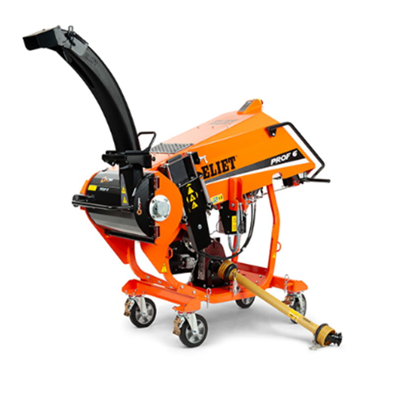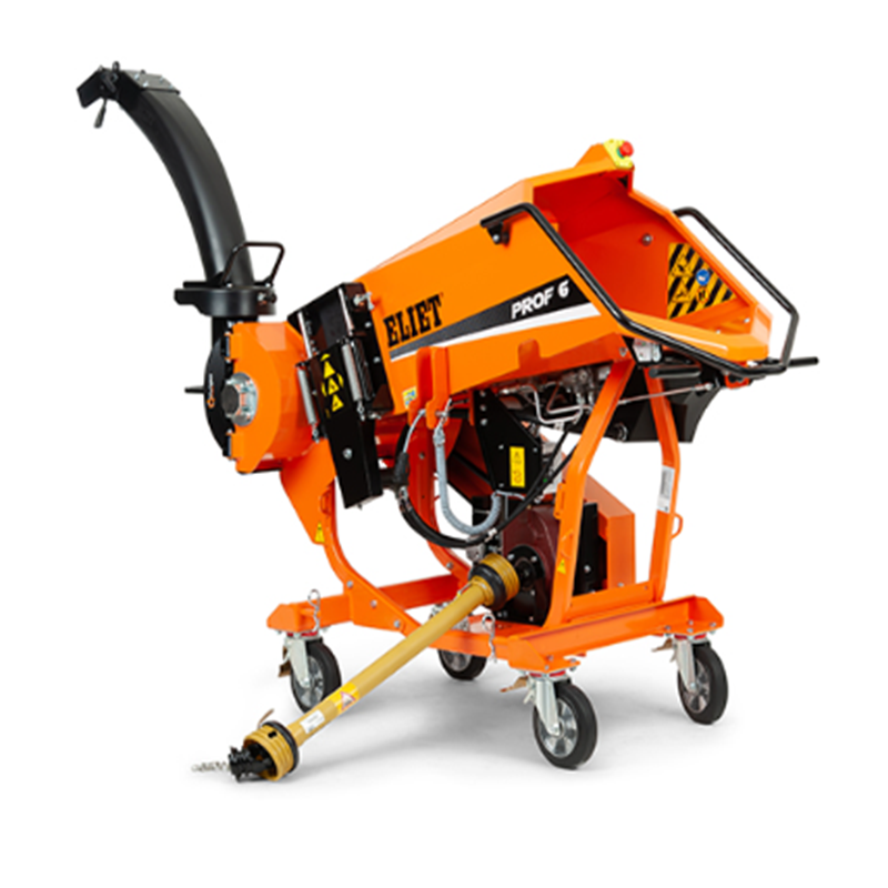 De ELIET PROF 6 PTO hakselaar met aftakas is een professionele machine, perfect voor hoveniers. Geplaatst op de driepuntsophanging van een tractor, weegt de machine 325 kg, wat geen probleem vormt voor de meeste minitractoren. Dit maakt het eenvoudig om de hakselaar de tuin in te rijden.
