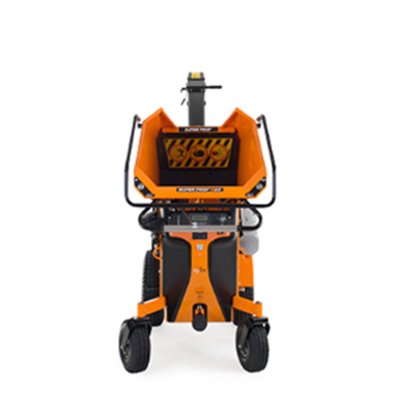 Bij de nieuwe Super Prof werd elk van de wielen uitgerust met een krachtige hydraulische wielmotor. Via een draaihendel aan het stuur regelt men met een simpele polsbeweging de snelheid voorwaarts of achterwaarts. Hoe verder u de hendel vooruit of achteruit verdraait, hoe sneller de machine zich in die richting vooruit beweegt. Deze wielaandrijving is zo krachtig dat één man de machine probleemloos kan laden en lossen uit een bestel- of aanhangwagen.