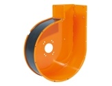 De uitblaaspijp met richtbare klep heeft - zoals de zuigslang - een diameter van 200 mm, wat verstopping zo goed als onmogelijk maakt. De gewervelde pijp, die gemaakt is uit gelaste stijlvaste staalelementen, is daarenboven 360° draaibaar. Het draaipunt werd vervaardigd uit nylon, is zelfsmerend en komt bijgevolg nooit vast te zitten door vuil of roest.