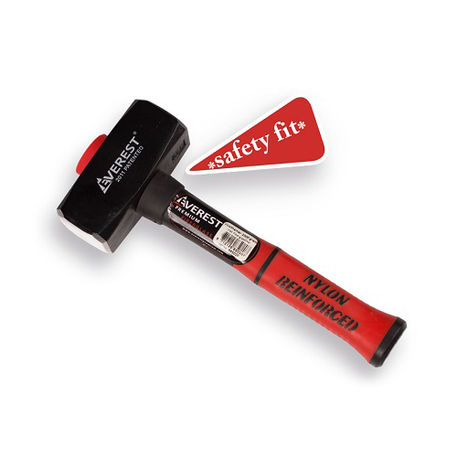 Vuisthamer - Moker EVEREST met keuze uit 1 - 2 kg met fiberglassteel EVEREST SAFETY FIT Multi Neck systeem. Din 6475 gekwalificeerd. Ideaal voor het zware werk! De fiberglassteel is Nylon versterkt, is voorzien van een anti slip uiteinde en heeft een innovatieve en veilige bevestiging aan de metalen slagkop. Sinds 2011 is deze unieke bevestigingsmethode gepatenteerd. Het gevaarlijk losschieten van de metalen kop wordt door de nieuwe veilige bevestigingsmethode voorkomen. Het zogenaamde Multi Neck systeem. Het vervangen van de steel wordt mogelijk gemaakt, door de steel met de onderzijde stevig los te tikken.