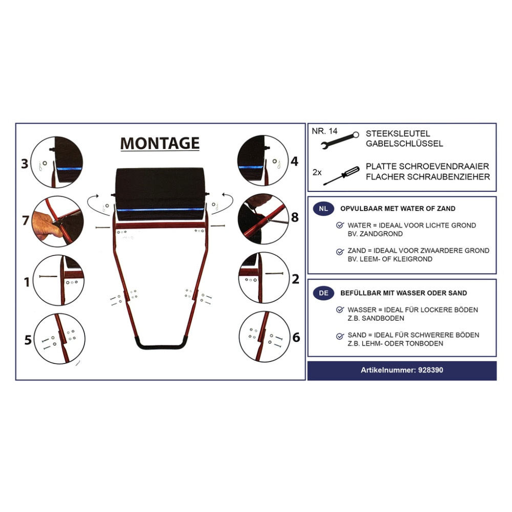 De Freund Gazonwals is geschikt voor het vlakmaken, aandrukken, walsen van zand en grond. De wals is gemaakt van staal, daarna geepoxeerd. Hij kan gevuld worden met water of zand voor extra gewicht. De wals is eenvoudig te monteren, makkelijk te hanteren en te vullen. Inhoud vulvolume is 35 liter. Het ledig gewicht is 10 kg.