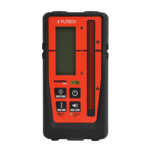 FUTECH Maestro ontvanger rood is een geavanceerde ontvanger met millimeter aanduiding, speciaal ontworpen voor rode rotatielasers. Met een indrukwekkend bereik van 400 meter biedt deze ontvanger betrouwbare en nauwkeurige metingen in grootschalige bouw- en meetprojecten.