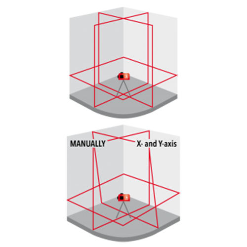 Deze lijnlaser heeft een zelfnivellerend magnetisch pendelmechanisme. Ontgrendel de transportvergrendeling en de FUTECH MultiCross 3D Compact zal zichzelf binnen enkele seconden nivelleren. Als de laser buiten zijn nivelleerbereik van 3° staat, zullen de laserlijnen knipperen. Plaats de laser op een vlakke ondergrond om dit op te lossen. De FUTECH MultiCross 3D Compact kan ook een schuine referentielijn creëren voor bijvoorbeeld trapleuningen. Activeer de "Slopemodus" door de knop voor laserlijnen enkele seconden ingedrukt te houden terwijl de laser is ingeschakeld. Kantel de laser in de gewenste positie en het indicatielampje zal branden.