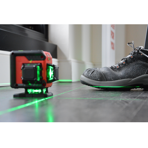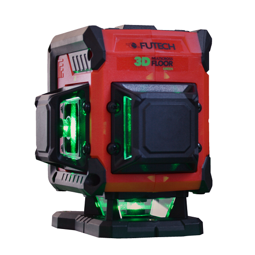De FUTECH Multicross 3D Floor kruislijnlaser - Groen is de nieuwste toevoeging aan het assortiment van FUTECH 3D lasers. Het apparaat werkt volgens een omgekeerd principe van de 3D lasers en MultiCross modellen. Dit principe is ontwikkeld om de hoogte bij vloerwerkzaamheden, zoals het plaatsen van plinten, gemakkelijk te kunnen controleren. Ondanks deze aanpassing zijn alle 3D functionaliteiten nog steeds aanwezig, waardoor de MultiCross 3D Floor nog steeds de meest uitgebreide laser is.