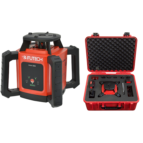 De FUTECH Para ONE is een rode rotatielaser die zowel binnen als buiten gebruikt kan worden. Met een bereik van maar liefst 2x 300m (met ontvanger) is deze laser perfect geschikt voor grote projecten. Dankzij de elektronische motornivellering en dubbele helling (X + Y-as) is de Para ONE uiterst nauwkeurig met een precisie van 1 mm / 10 m. Dit maakt hem ideaal voor diverse nivelleer- en meetwerkzaamheden, van het leggen van vloeren tot het plaatsen van plafonds.