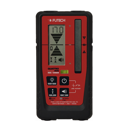 De FUTECH Quattro MM ontvanger is een handige magnetische ontvanger met millimeter aanduiding, speciaal ontworpen voor rode en groene lijn- en rotatielasers. Met een bereik van 60 meter voor lijnlasers en 200 meter voor rotatielasers biedt deze ontvanger betrouwbare en nauwkeurige metingen in verschillende toepassingen.