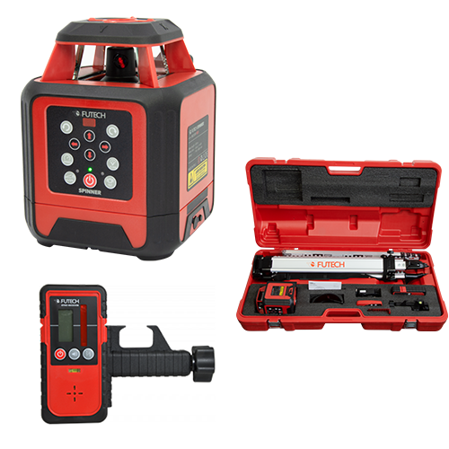 De FUTECH Spinner rotatielaser is de ideale tool voor nauwkeurig nivelleren en meten op elke werkplaats. Met een roterend bereik van 360 graden en een nauwkeurigheid van 1,5 mm / 10 m, biedt deze laser een ongekende precisie en betrouwbaarheid bij het nivelleren en uitvoeren van diverse meettaken. De Spinner is uitgerust met motorische nivellering, waardoor de nauwkeurigheid van metingen wordt verhoogd en de tijd die nodig is om het instrument in te stellen aanzienlijk wordt verminderd.