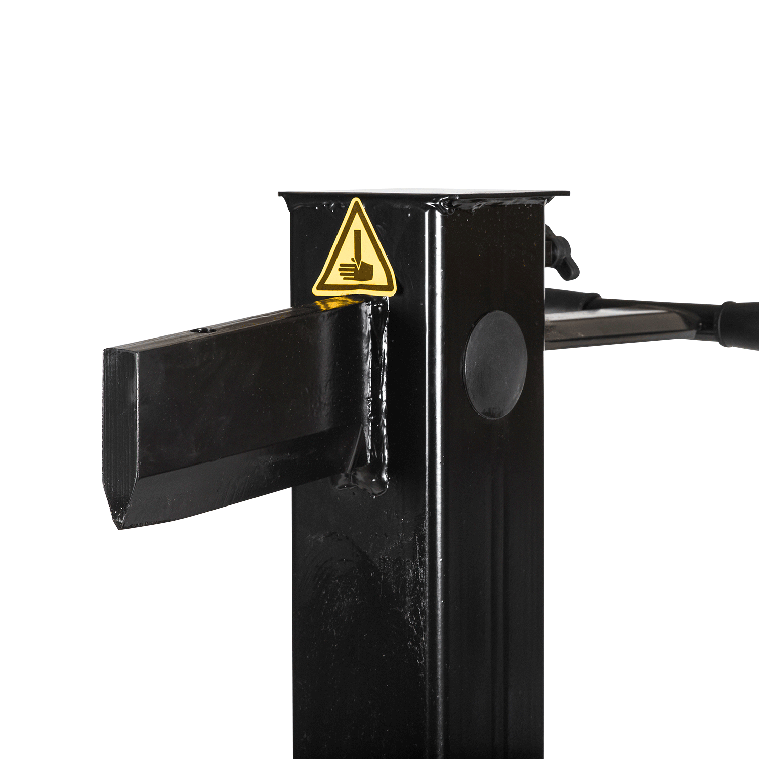 De bediening vereist het gebruik van twee handen en is uitgerust met een toegangsbeveiliging, wat optimale veiligheid garandeert tijdens het kloofproces. Daarnaast biedt de GAMUL-T8 aan beide zijden praktische opbergruimte voor gekloofd hout, waardoor het werkproces soepel en overzichtelijk verloopt.