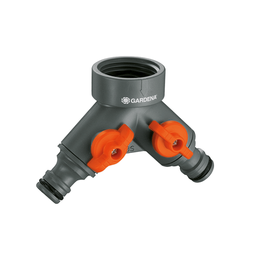Met het Gardena 2-weg ventiel kunt u twee besproeiingsaccessoires laten werken. Zo hoeft de slang niet verwisseld te worden bij de kraan. De waterdoorvoer op beide uitgangen is volledig instelbaar, onafhankelijk van elkaar. Het Gardena ventiel is geschikt voor waterkranen met 33,3 mm (G 1 ").