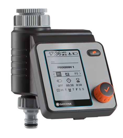 Met de Gardena besproeiingscomputer Master kan de besproeiing bijzonder flexibel en individueel worden ingesteld. Er kunnen maximaal zes verschillende en onafhankelijke planningen worden gemaakt. Het apparaat werkt op batterijen, is rechtstreeks op de kraan aangesloten en kan eenvoudig worden bediend met alleen een draai- en drukknop om de gegevens te selecteren en te bevestiging. Een gemakkelijk leesbaar, volledig grafisch display toont alle instellingen in één oogopslag. Het menu kan in 10 talen worden ingesteld. Het weerbestendige bedieningspaneel kan worden verwijderd. Het is gemakkelijk om de besproeiingsduur centraal aan te passen of om alle besproeiingen bij slecht weer stop te zetten. De unit is ideaal voor het automatisch regelen van de Gardena waterverdeler. De Water Control Master kan ook worden gebruikt in combinatie met een Gardena bodemvochtigheidssensor. Als de bewatering direct moet worden gestart, kan dit handmatig zonder de unit van de kraan af te halen of de instellingen te wijzigen.