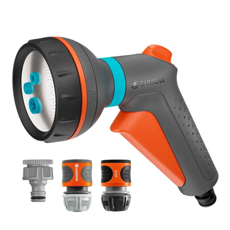 De GARDENA Classic multifunctionele sproeier biedt vier praktische sproeistanden voor uiteenlopende bewaterings- en reinigingstaken. De zachte kegelstraal is ideaal voor kwetsbare planten, de volumestraal voor potplanten, de zachte broes voor het gelijkmatig bewateren van bloembedden en groentetuinen, en de krachtige straal voor schoonmaakwerk. Wisselen tussen de standen gaat eenvoudig, zodat elke klus snel en efficiënt kan worden uitgevoerd.