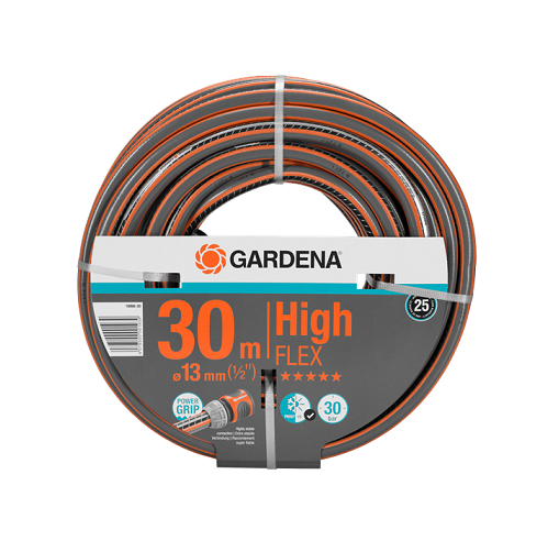 De Gardena Comfort HighFLEX slang is uitgerust met een Power Grip profiel voor perfecte verbinding tussen de tuinslang en de koppeling. Bijzonder drukbestendig en vormvast dankzij de hoge kwaliteits koolstof versterkende spiraal structuur. Knikt en verdraait niet. Glijdt makkelijk langs obstakels. Versterkte wanden voor meer veiligheid en langere levensduur. Past perfect bij het Original Gardena System. Vrij van Ftalaten & zware metalen. 4-kleuren nieuwe displayschijf. Drukbestendig : 30 bar. Garantie : 25 jaar.