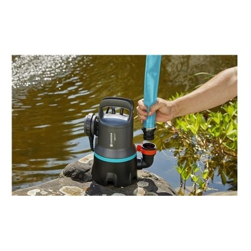 Met de Gardena schoonwaterpomp 9000 kun je regentonnen voor de winter, maar ook een souterrain na een overstroming leegpompen. Deze dompelpomp heeft een laag energieverbruik en is niet alleen zeer krachtig, maar ook bijzonder efficiënt. Hij biedt een vlakke aanzuiging tot 2 mm.
