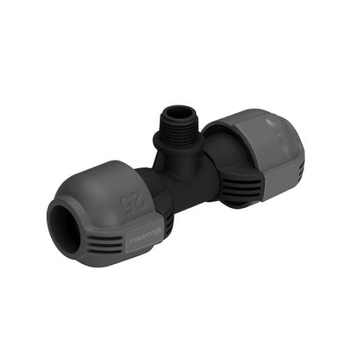 Als onderdeel van het Gardena sproeiersysteem kan je met het Gardena T-stuk 25 mm x 1/2" buitendraad de Verzonken sproeier S 80 en de verzonken turbinesproeiers T 100 en T 200 binnen de lengte van de buis worden geïnstalleerd. Door de gepatenteerde 'Quick & Easy'-aansluittechnologie kunnen leidingen zonder gereedschap worden gemonteerd en gedemonteerd door de schroefaansluiting 140° te draaien. Voor een waterdichte, veilige werking is de schroefdraadaansluiting van het T-stuk zelf afdichtend.