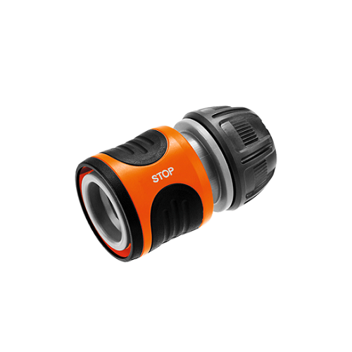 De Gardena waterstop voor bevestiging op het uiteinde van de slang. Als het aangesloten besproeiingsaccessoire wordt losgekoppeld, bijv. een broes of sproeier, stopt de watertoevoer automatisch; als een accessoire wordt aangesloten, stroomt het water weer. Bij het wisselen van accessoires hoeft u niet naar de kraan te lopen. Deze waterstop is geschikt voor 13 mm (1/2") en 15 mm (5/8”) slangen. POWER GRIP: Speciaal gevormde wartelmoer voor een probleemloze montage en zeer sterke slangverbinding, met ribbels van zacht kunststof voor comfortabel gebruik. Een rubber ring geeft het product extra bescherming.