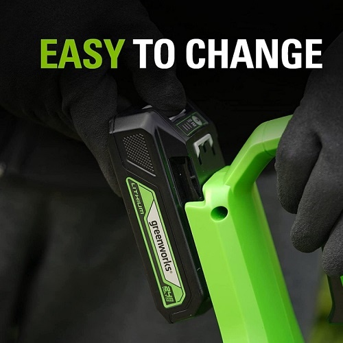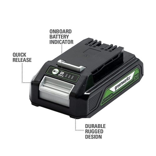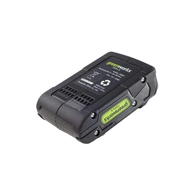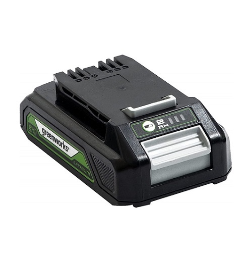De Greenworks lithium ION accu's hebben een 3 x langere levensduur dan NICAD accu’s. De accu's hebben geen geheugen effect “je mag altijd laden en bijladen”. De accu's geven continue een gelijk vermogen en zijn tot 2000x oplaadbaar. De accu’s zijn tevens voorzien van 3 led lampjes welke de nog aanwezige hoeveelheid energie in de accu aangeven. De 24 Volt accu's zijn te gebruiken in alle 24 volt Greenworks machines onafhankelijk van het Ah van de accu. De laadtijd van een G24B2 (2.0 Ah) accu met een G24C acculader is 60 minuten.