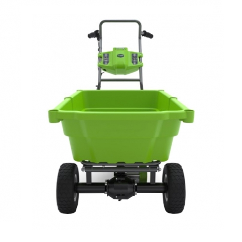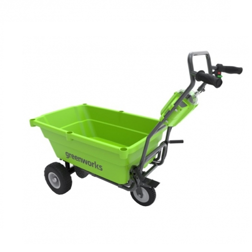 Met de Greenworks G40GC accu kruiwagen van 40 V heb je een compacte, wendbare en krachtige accu kruiwagen. Met een breedte van 68 cm kan de kruiwagen makkelijk door elke poort. Het maximale laadgewicht is 100Kg. Het grote voordeel van werken met een accukruiwagen is uiteraard geen verlengsnoeren en geen brandstof.