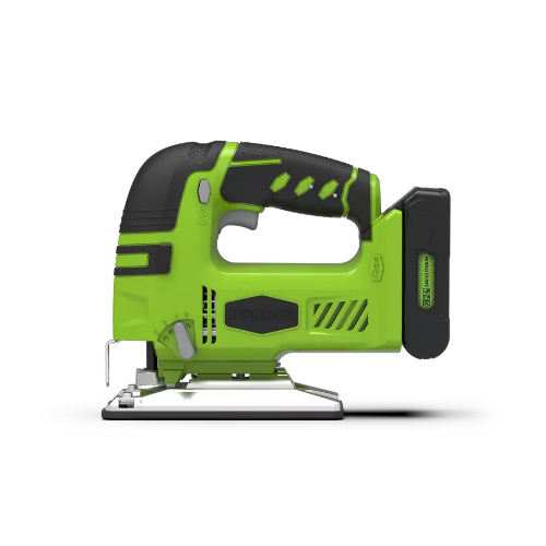 Met de Greenworks GD24JS accu decoupeerzaag heb je een zeer krachtige decoupeerzaag op accu. De machine is voorzien van de koolborstelvrije DIGIPRO motor en heeft een maximale zaagdiepte van 10 cm in hout en 0,8 cm in metaal. De machine is voorzien van 3 pendelstanden en met de hoogste pendelstand zaag je veel sneller. Dit komt doordat de machine door de pendelbeweging meer materiaal wegneemt.