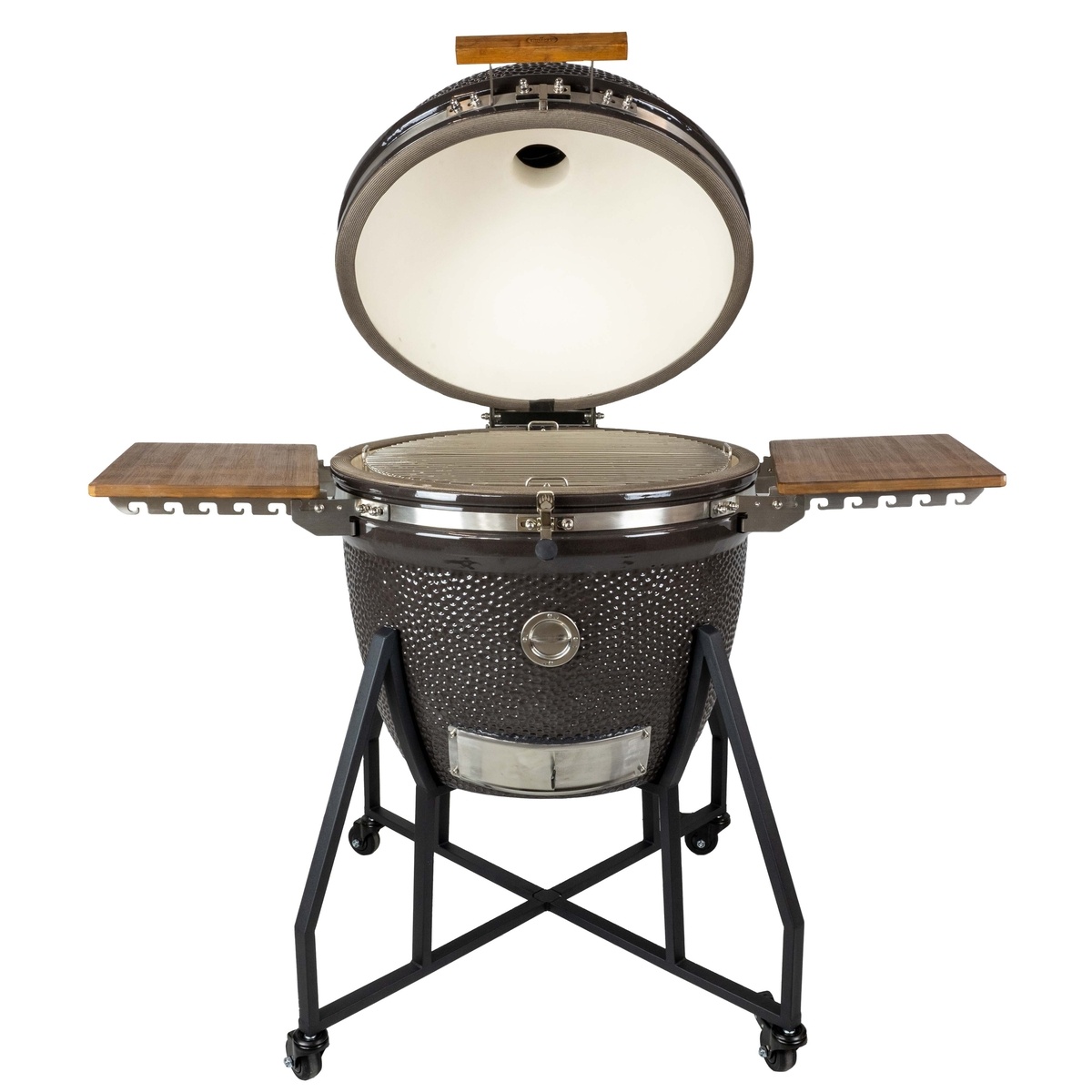 • Stabiel onderstel met wielen maakt verplaatsen eenvoudig, zelfs bij volledig beladen kamado.