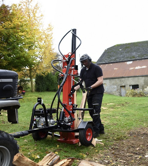 De houtkliever is voorzien van een trekhaak om de machine gemakkelijk te verplaatsen (de machine is niet geschikt om mee op de openbare weg te rijden). Daarnaast kan de cilinder helemaal zakken om de machine gemakkelijk in een bus te vervoeren of voor compacte opslag in de schuur.
