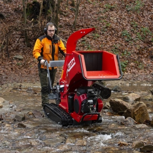 Het rupsonderstel wordt aangedreven door een Honda GX160 motor en heeft 3 vooruitversnellingen en 1 achteruitversnelling. Met een breedte van slechts 72 cm kan de machine eenvoudig door smalle doorgangen manoeuvreren. Het in- en uitladen in een bus of trailer is dankzij dit besturingssysteem probleemloos. Om aan alle eisen van professionals te voldoen, is de GTS1800RH standaard uitgerust met een urenteller, een extra brandstoftank (10 liter) en een 270° draaibare uitvoer. De deflector op de uitvoer is bovendien aanpasbaar tot 100°, zodat je de houtsnippers in elke gewenste richting kunt blazen.